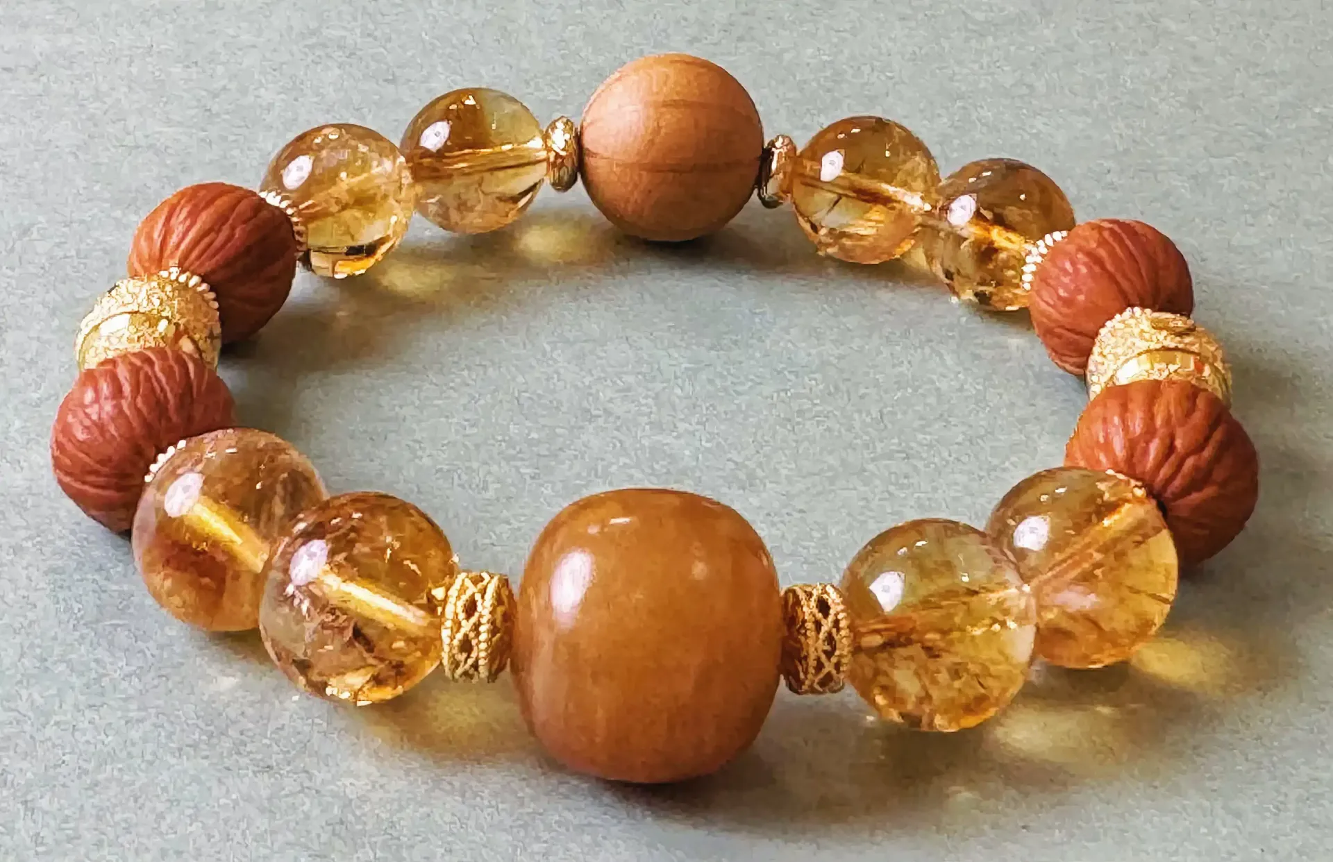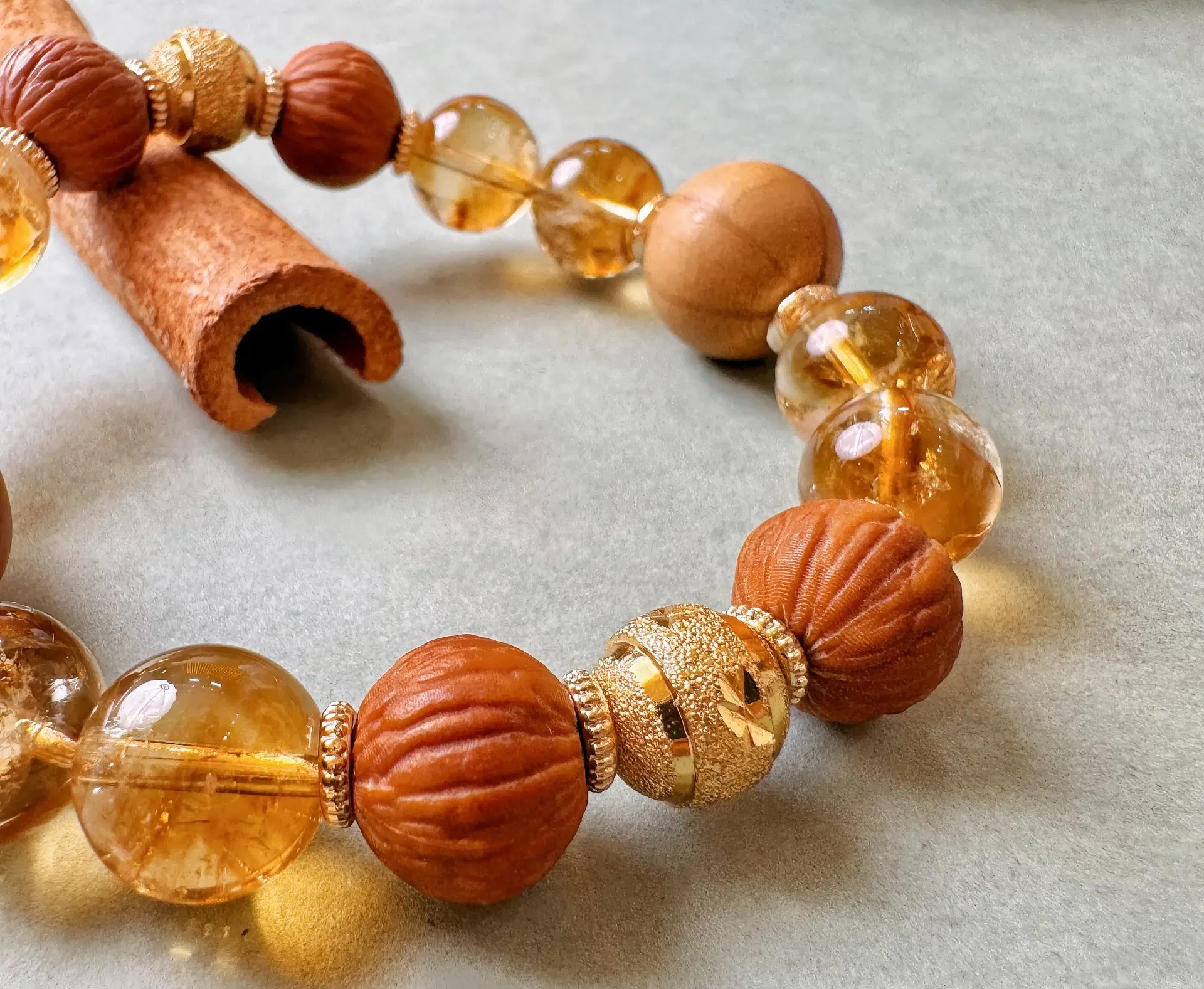 This cycle signifies that the bracelet's energy isn't static, but rather dynamically intertwined and constantly strengthened. The energy of the Phoenix Feather Bodhi boosts the wealth-attracting roots of the aged beeswax and yellow asai, while this rich earth energy further nourishes the nobility and wealth of the gilded beads, creating an endless cycle that sees fortune soar.